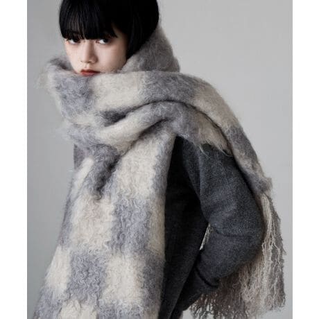 etoll. エトル 顔が埋もれるくらいふわりとした素材感で、主役級の存在感を発揮してくれるチェッカーボードマフラー。