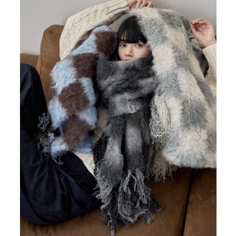 etoll. エトル 顔が埋もれるくらいふわりとした素材感で、主役級の存在感を発揮してくれるチェッカーボードマフラー。