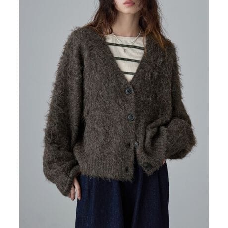 etoll. エトル ウォーム感のある起毛糸で仕上げたシャギーVネックカーディガン。