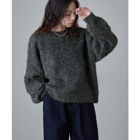etoll. エトル ウォーム感のある起毛糸で仕上げたミドル丈のシャギーニットプルオーバー。