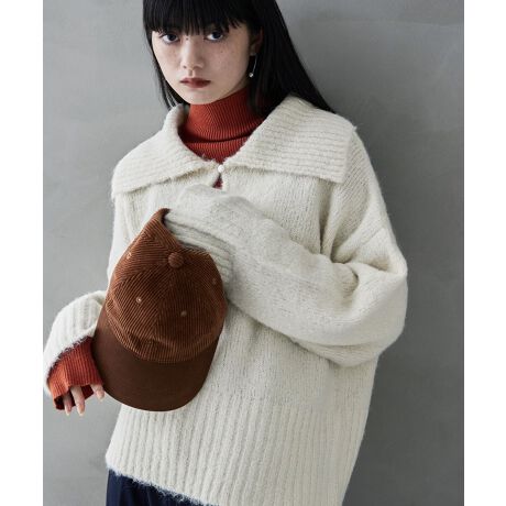 アルパカタッチビッグカラーニット