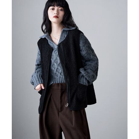 etoll. エトル レイヤードするだけで見慣れた服の印象を変える、軽量ボアジップベスト。