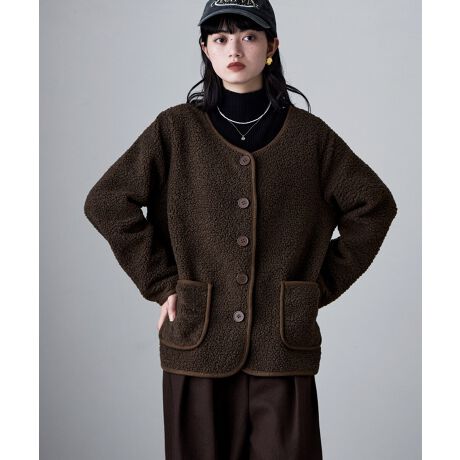 ノーカラーライトボアコート