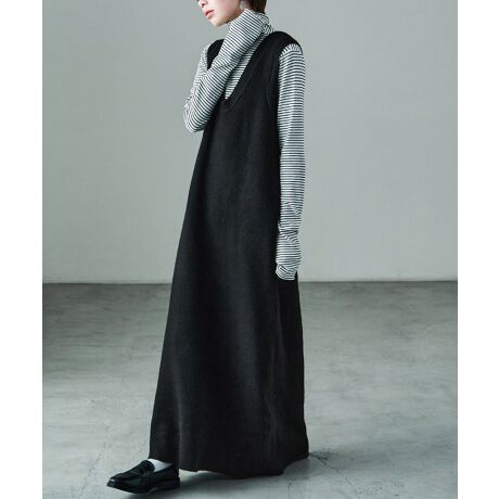 シンプルなタンクワンピースはアレンジ自在でレイヤードコーデを楽しめる。