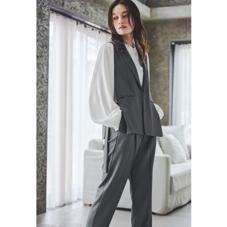 ブラウスはフリルネックとふんわりとした袖で女性らしさをプラス。