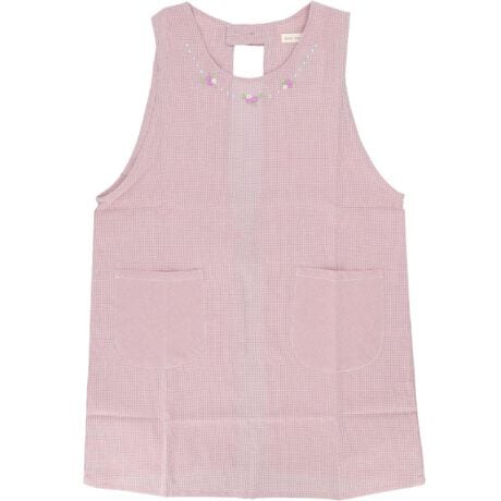 【毎日の家事のお供に】薄手だからラフに着られる!ラン型エプロンが登場。【ナチュラルで可愛い】チェック柄と胸元の刺?がポイントの可愛いデザイン◎【簡単着用】首に掛けて腰ひもを結ぶだけの簡単仕様だから、手軽に着れて嬉しい♪【調節可能】首回りはボタンで2段階調節可能〇【大きなポケットが便利】スマホやレシピなどをサッと出し入れできる、大きめのポケットを配置。【幅広いシーンで活躍】家事やお仕事はもちろん、ガーデニングの際にも使える万能アイテム!