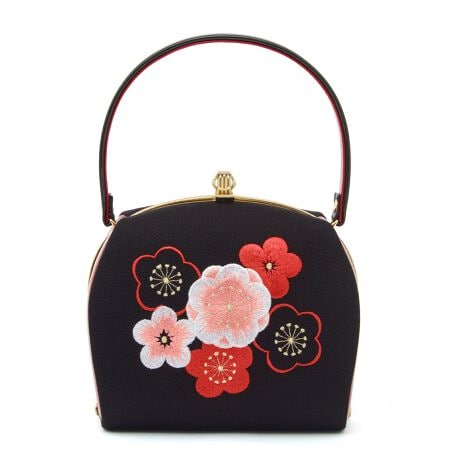 縮緬(ちりめん)生地に梅の花々が刺繍された華やかなデザインです。