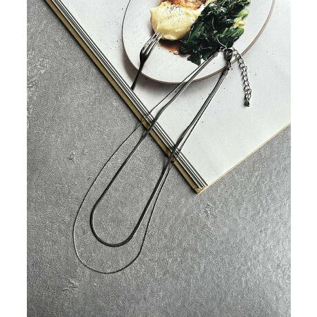細身のデザイン違いのチェーンが連なった、上品で洗練された印象のネックレス。