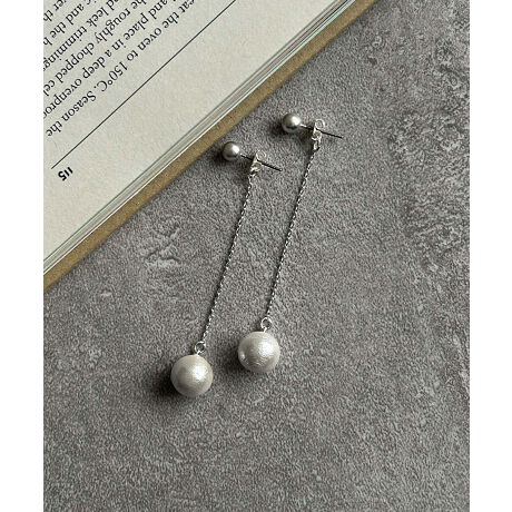 華奢なチェーンの先でコットンパールがふんわり揺れる、上品で女性らしいロングピアス。