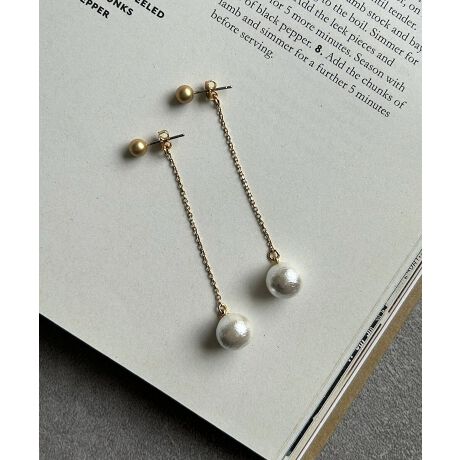 華奢なチェーンの先でコットンパールがふんわり揺れる、上品で女性らしいロングピアス。