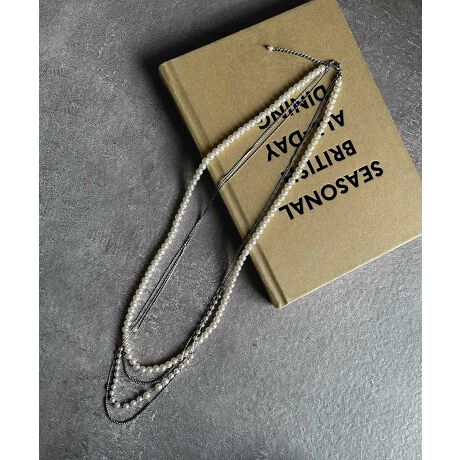 上品なパールと華奢なメタルチェーンをミックスした、マルチレイヤードネックレス。