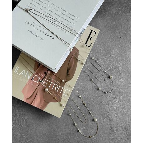 細めのチェーンに小粒パールを散りばめた、抜け感のあるレイヤードデザイン。