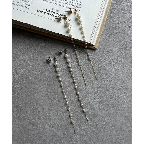 上品な艶めきを放つパールを繊細に連ねた、エレガントなロングチェーンピアス。