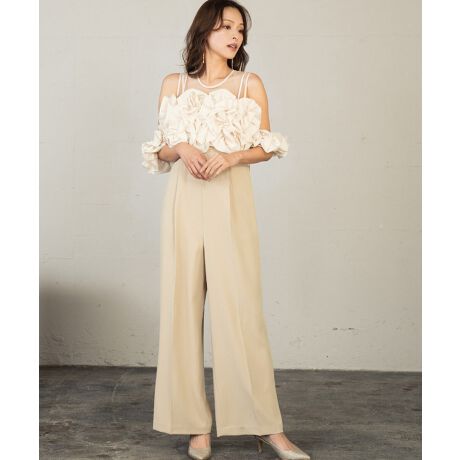 特別な日におすすめの華やかさと上品さを兼ね備えたパンツドレスです。