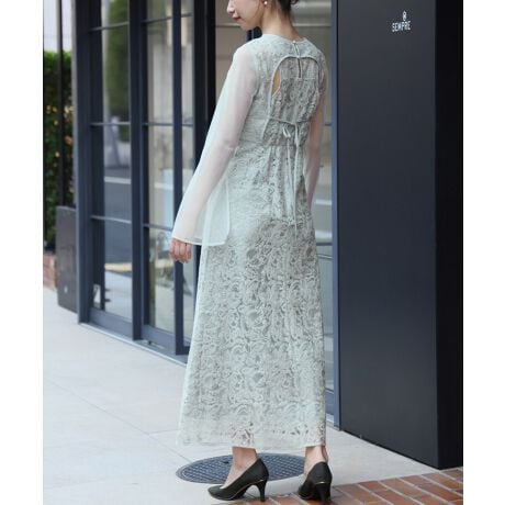 フロントの上品さと、後ろ姿の遊び心で魅せる1着です。