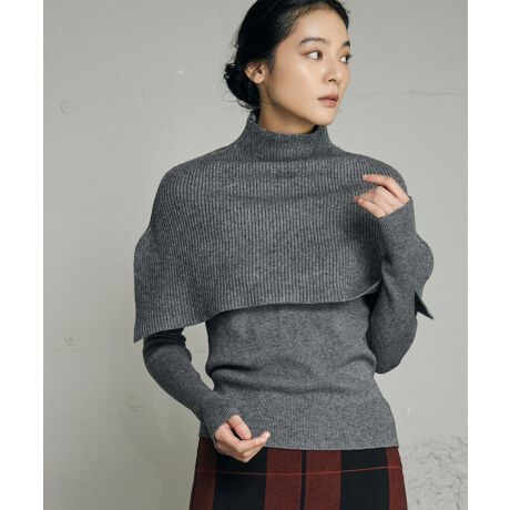 タートルニットと同素材のポンチョ風ニットのセットアイテム。