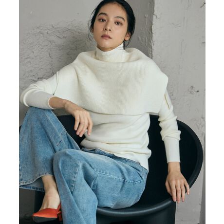 タートルニットと同素材のポンチョ風ニットのセットアイテム。