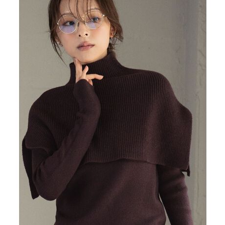 タートルニットと同素材のポンチョ風ニットのセットアイテム。