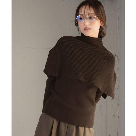 タートルニットと同素材のポンチョ風ニットのセットアイテム。