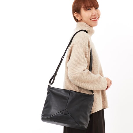 [型番:1034910]タッチ感の良いソフトなレザーを使用したシリーズ。ソフトな素材感を活かす為、袋縫いで仕上げました。デイリー使いにも最適な軽さのバッグです。
