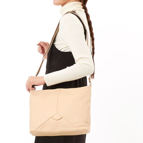 [型番:1034910]タッチ感の良いソフトなレザーを使用したシリーズ。ソフトな素材感を活かす為、袋縫いで仕上げました。デイリー使いにも最適な軽さのバッグです。