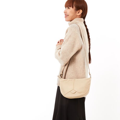 [型番:1034912]タッチ感の良いソフトなレザーを使用したシリーズ。ソフトな素材感を活かす為、袋縫いで仕上げました。デイリー使いにも最適な軽さのバッグです。