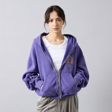 REMI RELIEF独自のSP加工で、90年代スウェット特有のフェード感と着古した風合いを再現したZIPパーカー。