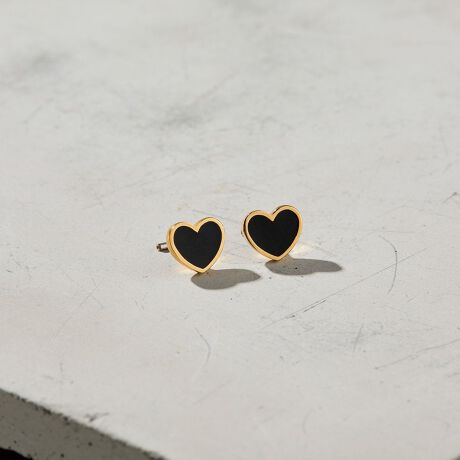 肌に馴染むゴールドカラーのフレームに、ブラックのハートモチーフをセットしたピアス。