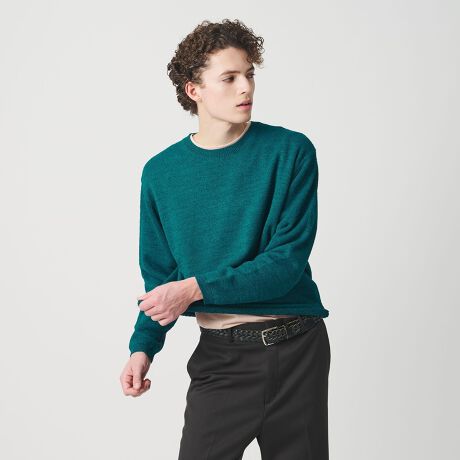 表情豊かな糸で編み上げた、スウェットライクな裏毛風のふんわりボディのクルーネックニット。