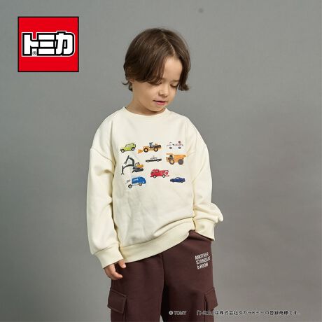 人気の車がたくさん集まった賑やかなプリントのトレーナーです。