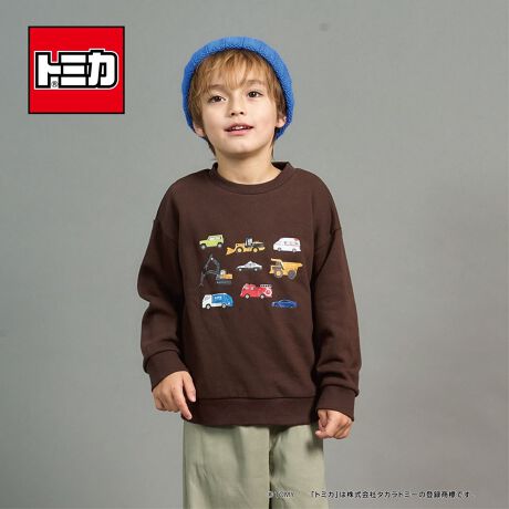 人気の車がたくさん集まった賑やかなプリントのトレーナーです。