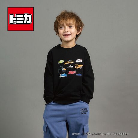 人気の車がたくさん集まった賑やかなプリントのトレーナーです。