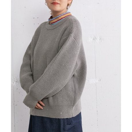 小さなスパンコールとラメ糸が織り交ぜられた、ほんのりきらめく片畦編みニット。カーディガン・プルオーバー両方で使える2way仕様。ざっくりとした片畦編みで、大人っぽくも甘さのあるデザインに仕上げました。ボトムに合わせて雰囲気を変えられる、頼れる一枚です◎