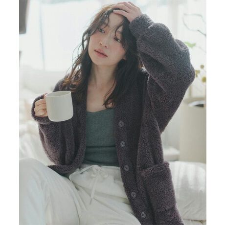 ふんわり柔らかなボア素材を使用した、あたたかいボアカーディガンルームウェア。