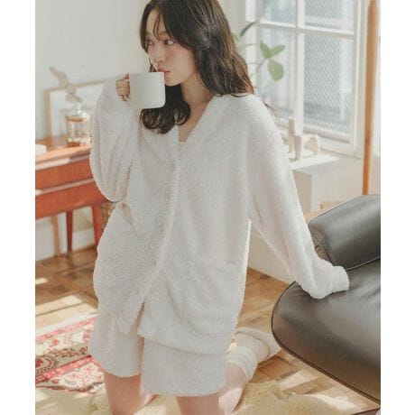 ふんわり柔らかなボア素材を使用した、あたたかいボアカーディガンルームウェア。