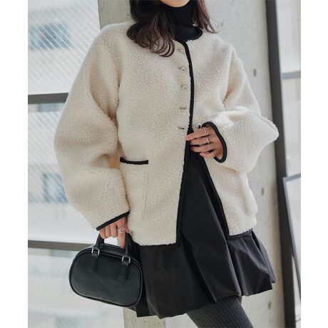 ボリューム感をおさえライトアウター感覚でも着ていただけ、どんなボトム合わせとも相性のよいミドル丈ボアジャケットです。
