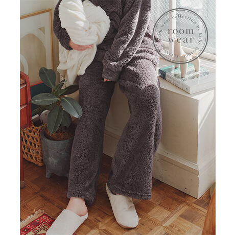 ふんわり軽いボア素材を使用した、冬に頼れるあったかロングパンツ。