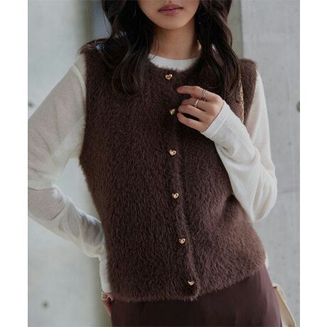 シアートップスやタートル、ロンTなど様々なインナー合わせで着こなせるニットジレベストです。