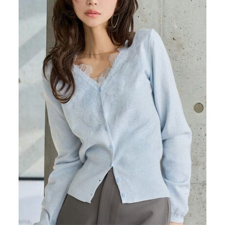 襟元のレースの華やかさを引き立てる上品なデザイン。