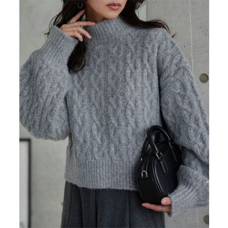 ゆったりとしたサイジングながらケーブル柄がコーデに奥行き感をもたらせ一枚で着映えさせてくれるハイネックニットです。