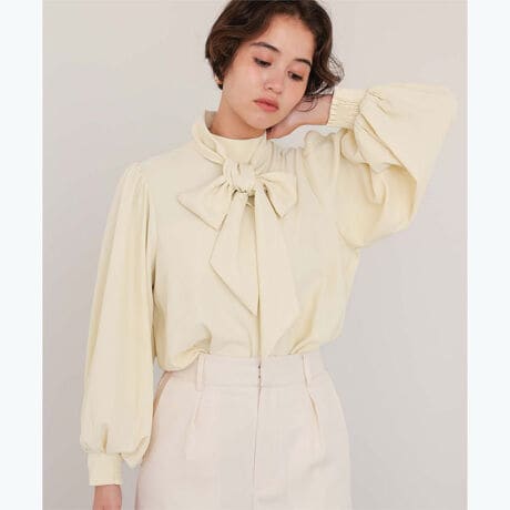 ・ボウタイリボン付きの華やかなブラウス。リボンは別で付属されているので、リボン無しでも、ありでも着ていただけます。