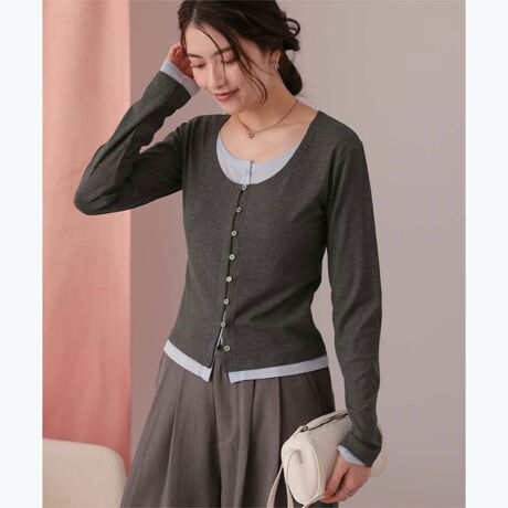 ・レイヤードしているように見える、1枚でこなれた重ね着コーデが完成する旬トップス