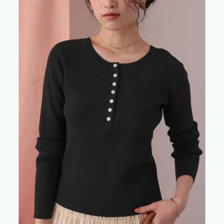 ・程よい厚みと伸縮性のあるリブ素材が、身体のラインをきれいに見せつつも快適な着心地