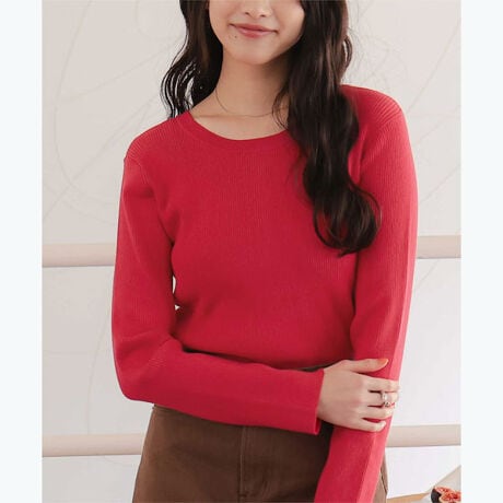 ・程よい厚みと伸縮性のあるリブ素材が、身体のラインをきれいに見せつつも快適な着心地