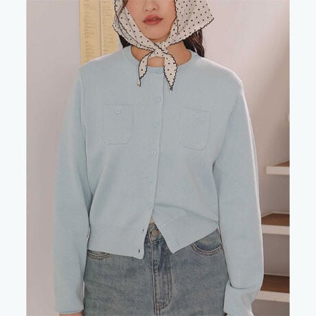 ・胸ポケットがアクセントになった、程よくカジュアルな抜け感カーディガン