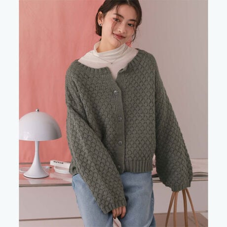 ・凹凸のある編地が特徴の“ポップコーンニット”で、表情豊かに仕上げた旬のカーディガン