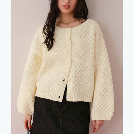 ・凹凸のある編地が特徴の“ポップコーンニット”で、表情豊かに仕上げた旬のカーディガン