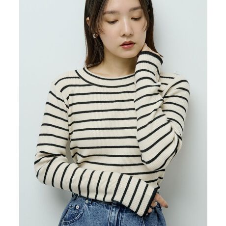 レーヨンベースで仕立てた滑らかな肌触りが嬉しいデザインニットプルオーバー。ソフトフィットするすっきりとしたシルエットでインナーとしても活躍する汎用性の高さが魅力です。ネックラインや袖に施したさり気ないラメラインがおしゃれなアクセント。カジュアルからきれいめまで幅広く合わせていただけるアイテムです。プレーンなボーダーカラーもおすすめ。透け感[ややあり]