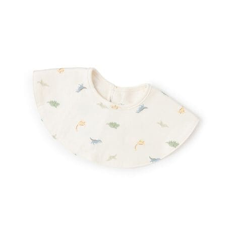 さまざまなモチーフをデザインした総柄のスタイです。個性的ながらも落ち着いた色合いで、日常に馴染みます。スナップボタンで簡単につけ外しできるのもうれしいポイント。防水機能を備えており、よだれをしっかりとガードします。