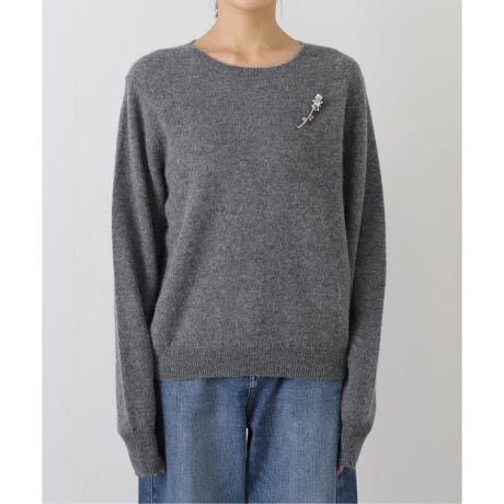 シンプルなプルオーバーに、オリジナルのキラキラとしたブローチをセット。
